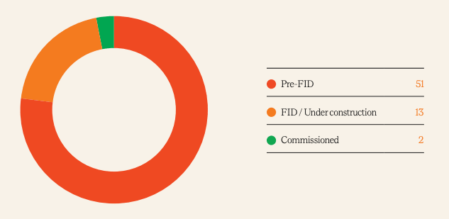 But as the next charts show, progress on getting CIS projects to the commissioning stage has been slow. Some speculate that — on top of all the other hurdles — the competitive bidding process produces deals that banks find hard to finance.