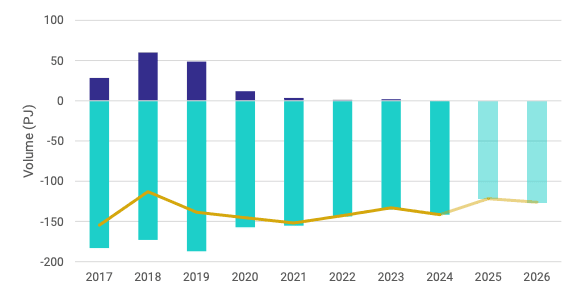 Domestic consumption is expected to fall from around 500 PJ/year in 2025 to between 400 PJ/year and 450 PJ/year by 2030, according to the GSOO.